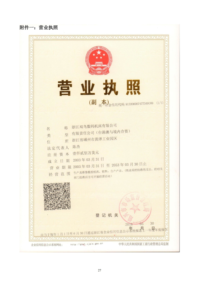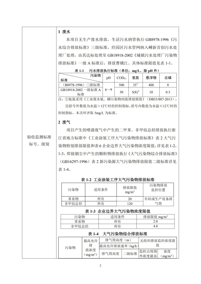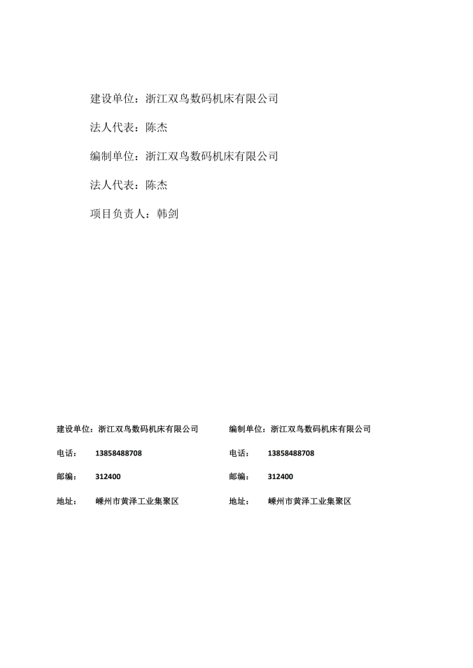 浙江雙鳥數碼機床有限公司年產 450 臺數控機 床建設項目竣工環境保護驗收監測(廢水、廢氣、 噪聲)報告表